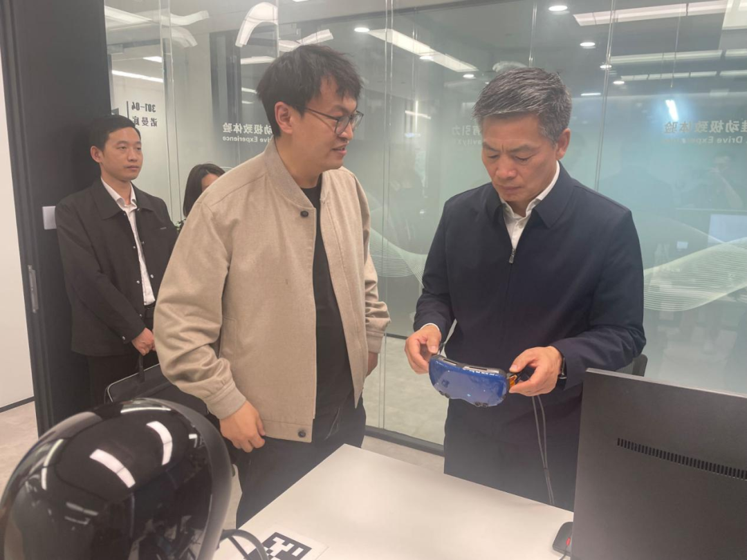 在萬有引力電子科技、時識科技兩家元宇宙核心硬件企業(yè),周勇士體驗AR/VR光學模組、類腦芯片等前沿技術,并與萬有引力創(chuàng)始人王超昊、時識科技創(chuàng)始人喬寧分別開展座談,就基金投資、協(xié)助對接資源等進行洽談。